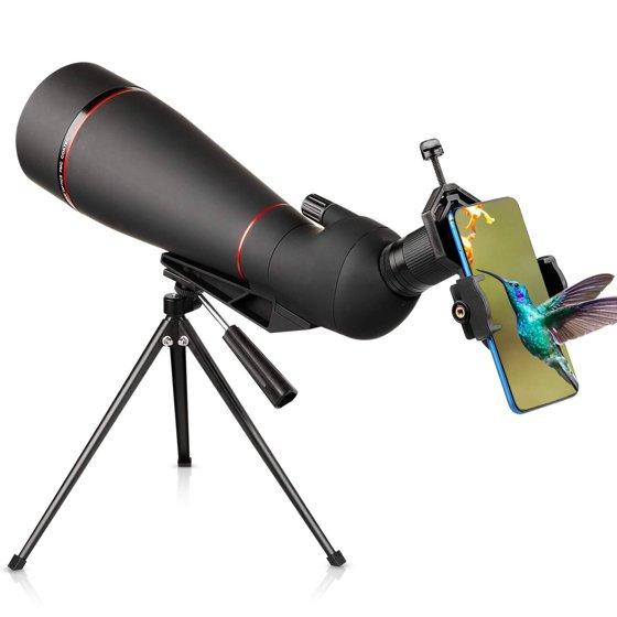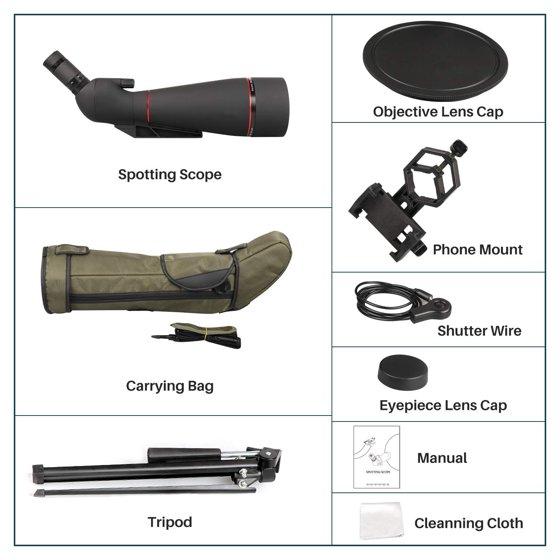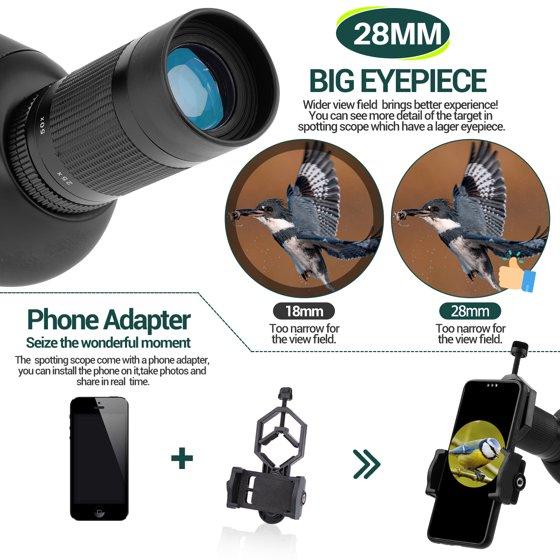 - 【Excellent Accessories】The spotting scope with tripod, provides you a more stable observation from any angles.And phone mount, which are best accessories to observe something in wild. The spotting scope kit also include carrying bag, very portable for you to take anywhere.