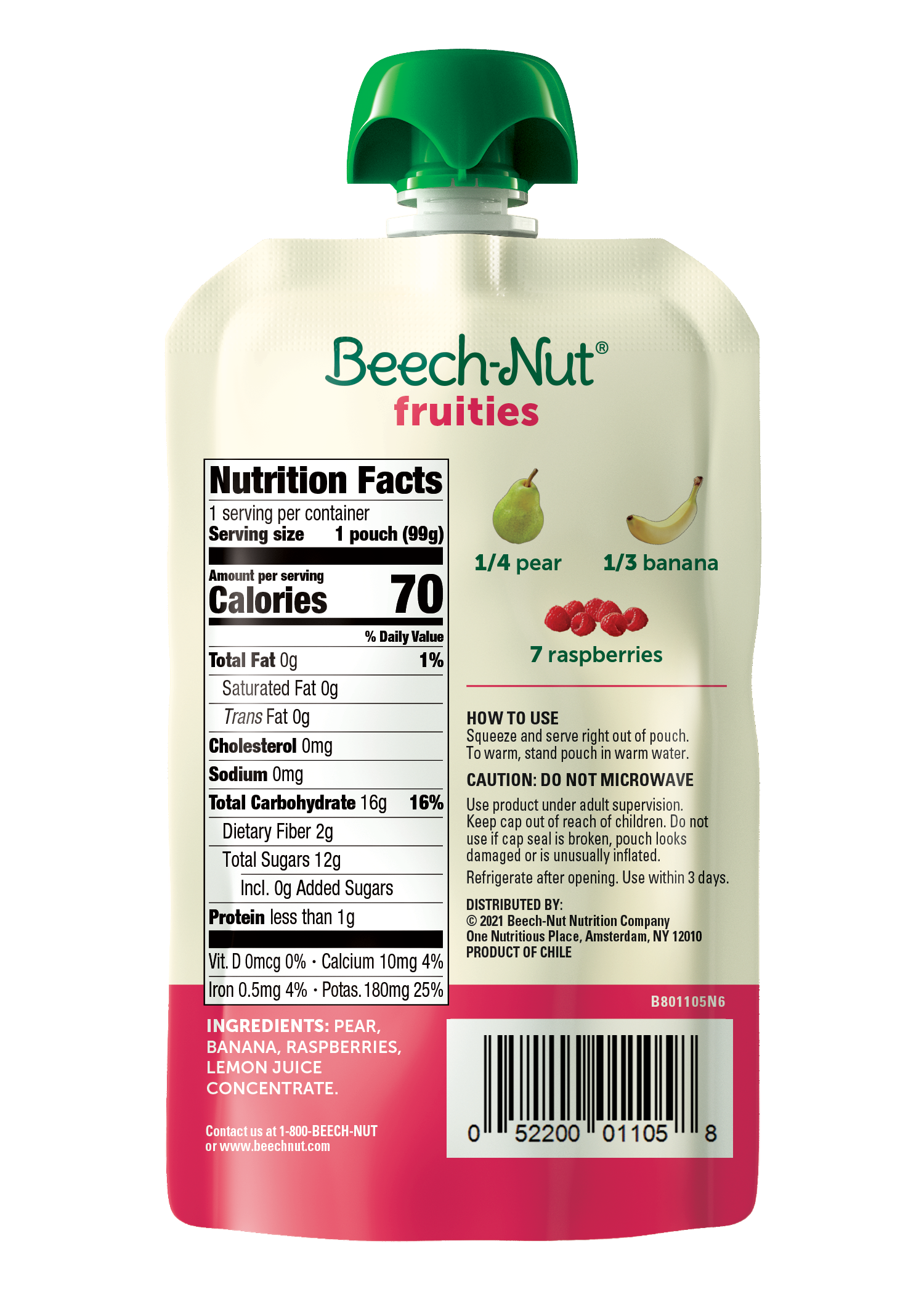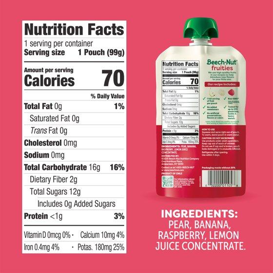 - Beech-Nut's delicious blend of pear, banana & raspberries