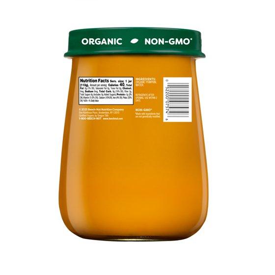 - Beech-Nut's deliciously pureed organic pumpkin baby food features a smooth texture for baby