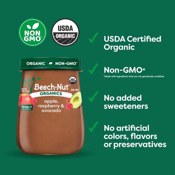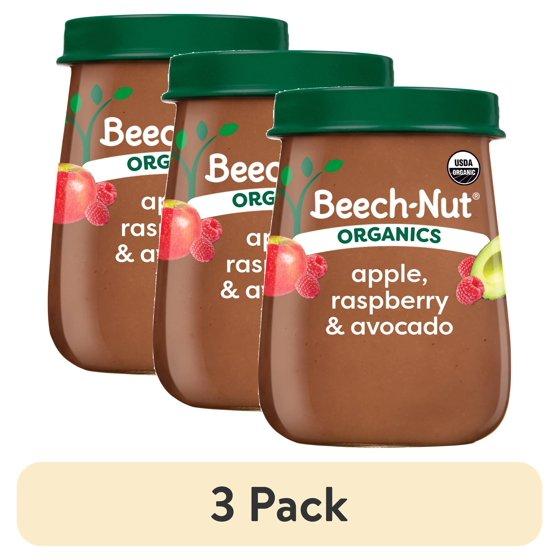 - Beech-Nut's deliciously pureed organic apple, raspberries & avocado with smooth texture for baby