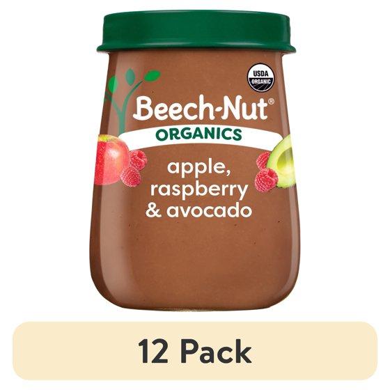 - Beech-Nut's deliciously pureed organic apple, raspberries & avocado with smooth texture for baby