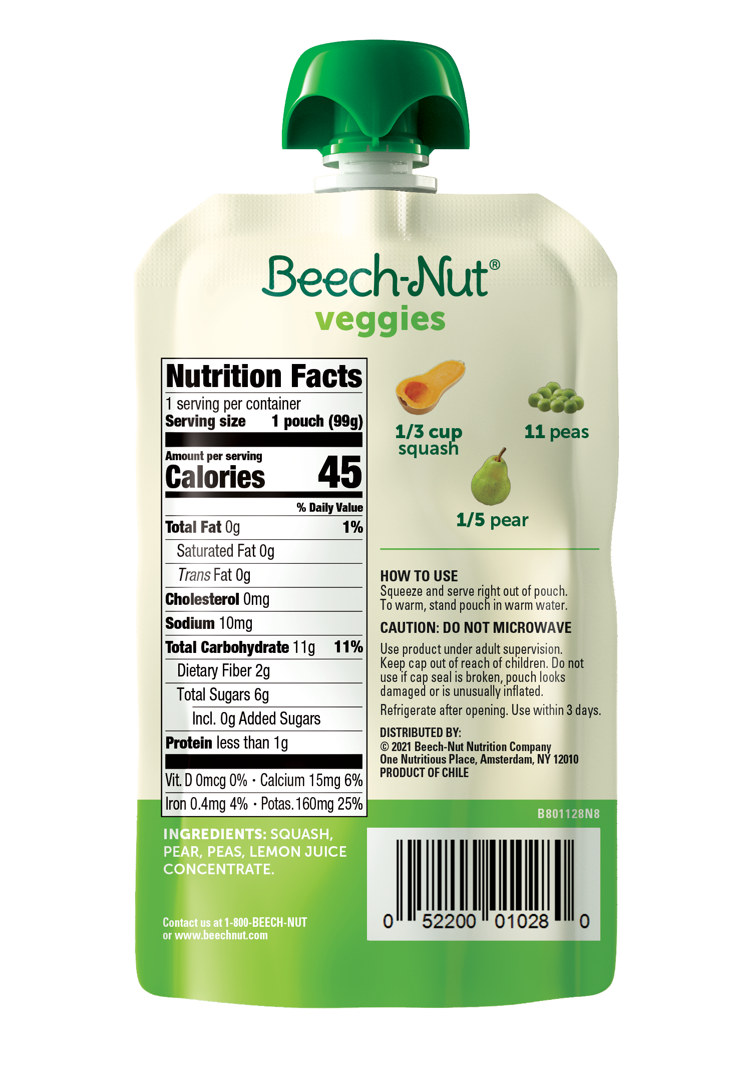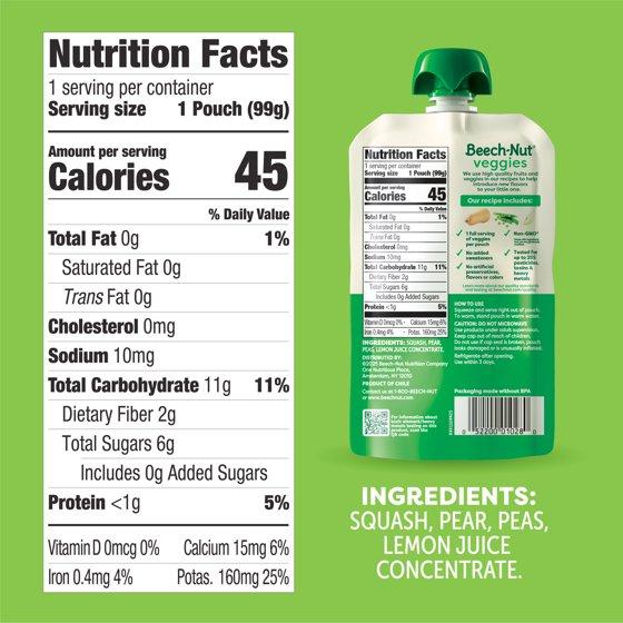 - Beech-Nut's delicious blend of squash, peas & pear