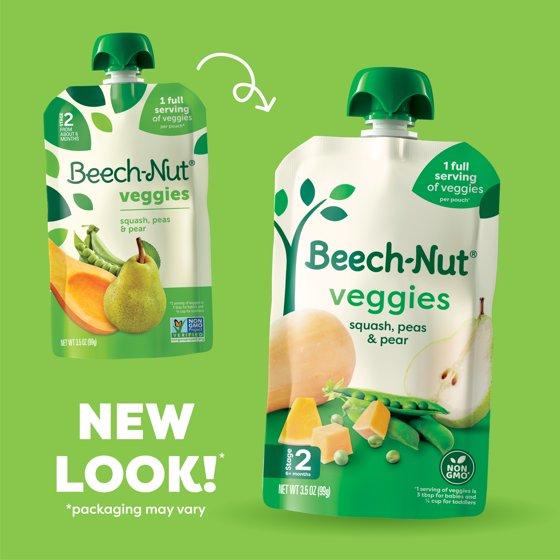 Beech-Nut Veggies Stage 2 Baby Food, Squash Peas & Pears, 3.5 oz Pouch