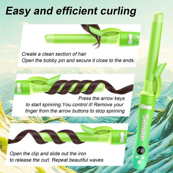 Belmaker Professional Curling Iron - Automatic Easy-to-Use Curling Iron, Salon Grade Curls and Waves, Rotating Curler-Perfect Gift for a Lady Comfortable Green Curlers