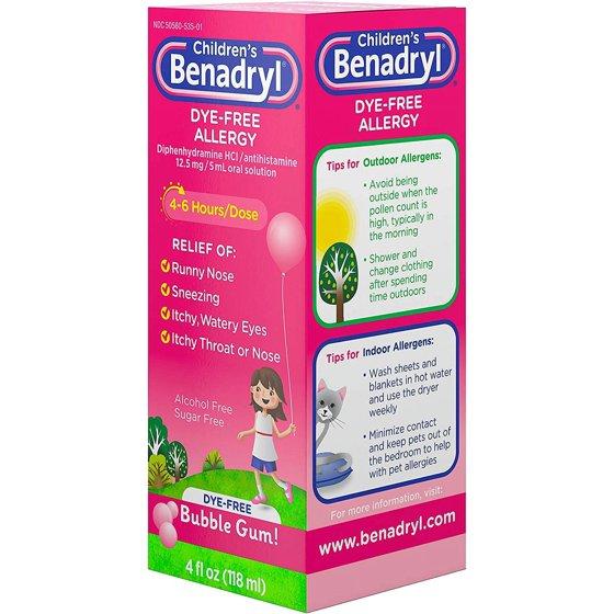 Benadryl Children's Allergy Relief, Dye-Free, Bubble Gum, 4 oz, 4 Pack