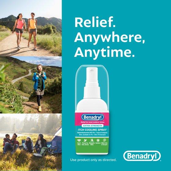 - Benadryl Extra Strength Itch Stopping Topical Cooling Spray for relief from minor pain and itching