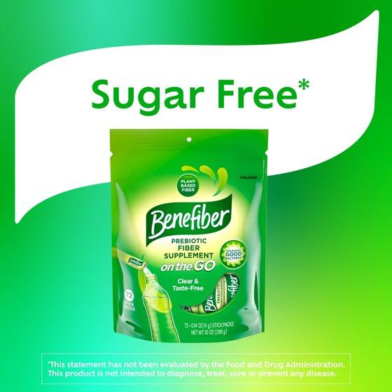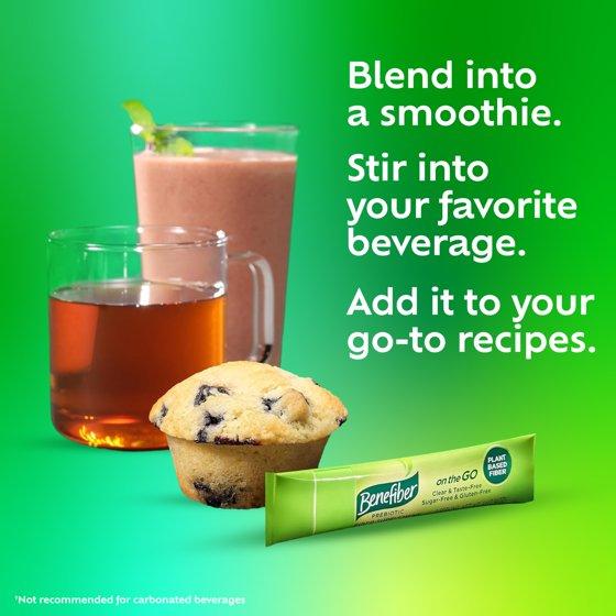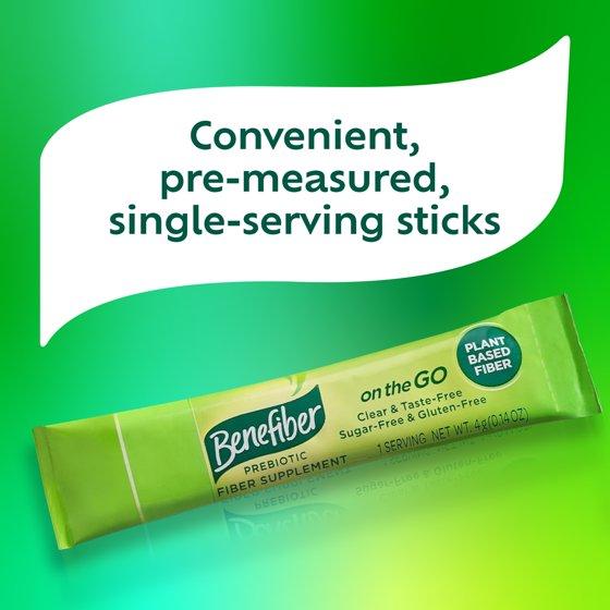 Benefiber On the Go Prebiotic Fiber Powder is a gluten free and sugar free supplement that helps you maintain good digestive health. Made with wheat dextrin, Benefiber fiber supplement powder nourishes the growth of good bacteria that exist naturally in your gut.(1) This powdered fiber supplement dissolves clear and completely, allowing you to enjoy all the benefits of prebiotic supplements without altering the taste and consistency of your favorite foods and beverages.(2) Benefiber stick packs come with conveniently pre-measured, single-serving unflavored fiber packets of powder that make it easy to add fiber to your diet wherever you go. For ages 12 and older, mix the contents into a non-carbonated beverage or soft food and stir well until fully dissolved, three times daily. For ages 6 to 11, use one half stick pack three times daily. What's good for your gut is good for you. (1) These statements have not been evaluated by the Food and Drug Administration. These products are not intended to diagnose, treat, cure or prevent any disease. (2) Not recommended for carbonated beverages. (3) The wheat has been processed to allow this food to meet the Food and Drug Administration (FDA) requirements for gluten-free foods. Use as directed.