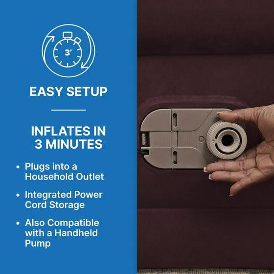 - Built-in 110-120V AC pump inflates the bed in 3 minutes