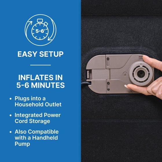 - Built-in 110-120V AC pump inflates the mattress in 5-6 minutes