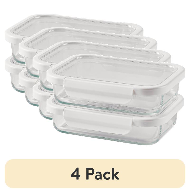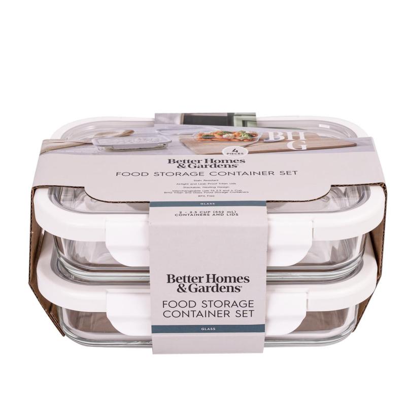 (4 pack) Better Homes & Gardens 2.3Cup Rectangle Glass Food Storage Container with Tritan Lid. Set of 2, 4 Pieces, Best Used for Leftover Storage and Reheating