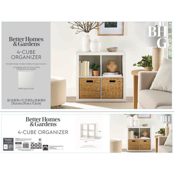 - Better Homes & Gardens 4-Cube Storage Organizer, White Texture