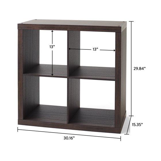 Add function and style to your home with the Better Homes & Gardens 4-Cube Storage Organizer. Available in multiple finishes, including both solid and wood grain options, this cube organizer features four 13" x 15" x 13" compartments, perfectly sized for displaying books, collectibles, photography, artwork, storage bins and baskets. The open back design makes it easy to manage cords and cables of electronic devices. The top panel of this sturdy bookcase can support up to 100 lbs and each cube space supports up to 30 lbs. Combine it with other Better Homes & Gardens cube organizers and storage bins (sold separately) to create a complete storage and display system. Easy to assemble with included instructions, the Better Homes & Gardens 4-Cube Storage Organizer is perfect for your office, living room, den, playroom and more.