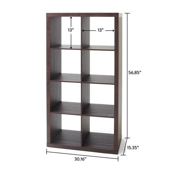 Add function and style to your home with the Better Homes & Gardens 8-Cube Storage Organizer. Available in multiple finishes, including both solid and wood grain options, this cube organizer features eight 13" x 15" x 13" compartments, the perfect size to display books, collectibles, photos, artwork, storage bins and baskets. An open back design makes it easy to manage cords and cables. This sturdy bookcase can stand vertically or horizontally to best make use of space. The top panel supports up to 100 lbs when vertical, and 150 lbs when horizontal. Combine it with other Better Homes & Gardens Cube Organizers and Cube Storage Bins (sold separately) to create a complete storage and display system. Easy to assemble with included wall attachment safety system, the Better Homes & Gardens 8-Cube Storage Organizer is perfect for your office, living room, den, playroom and more.
