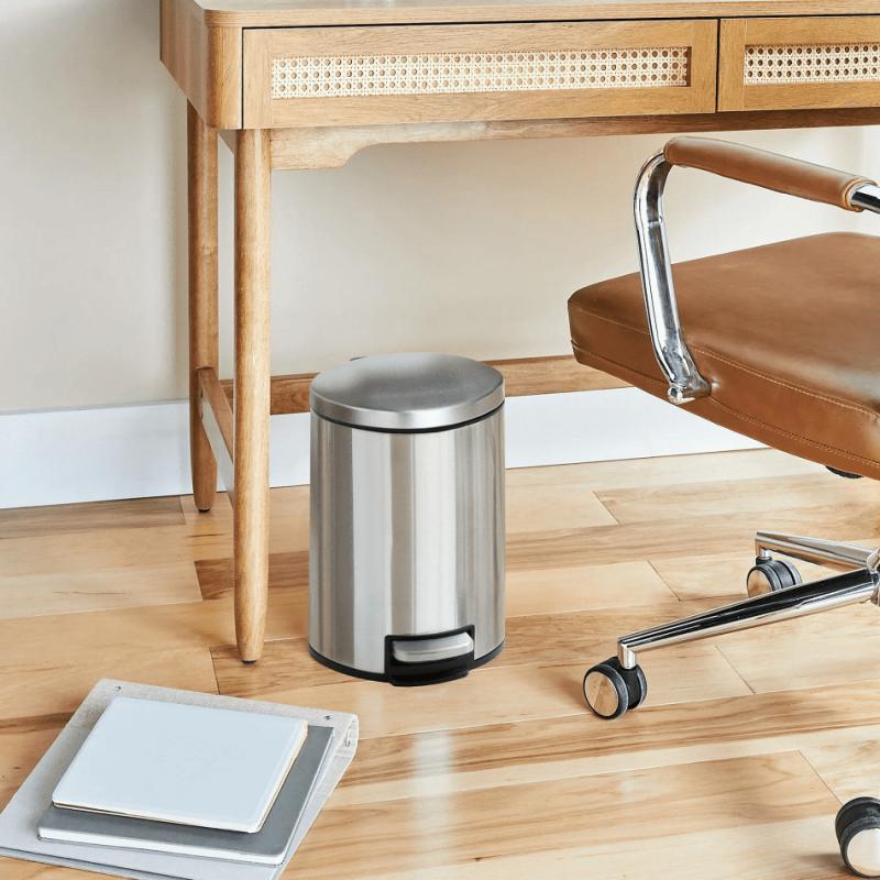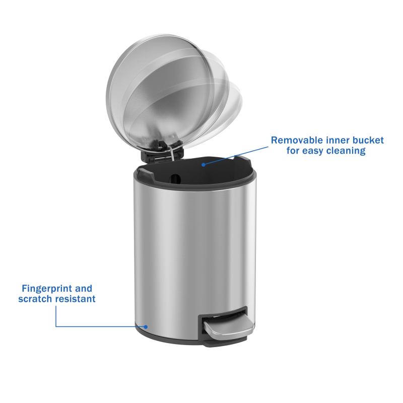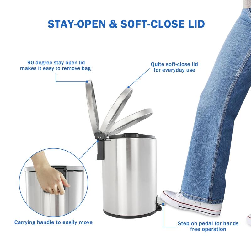- Better Homes & Gardens Bathroom Trash Can, 1.3 Gallon Small Stainless Steel Step Garbage Bucket Bin with Soft Close Lid, Silver