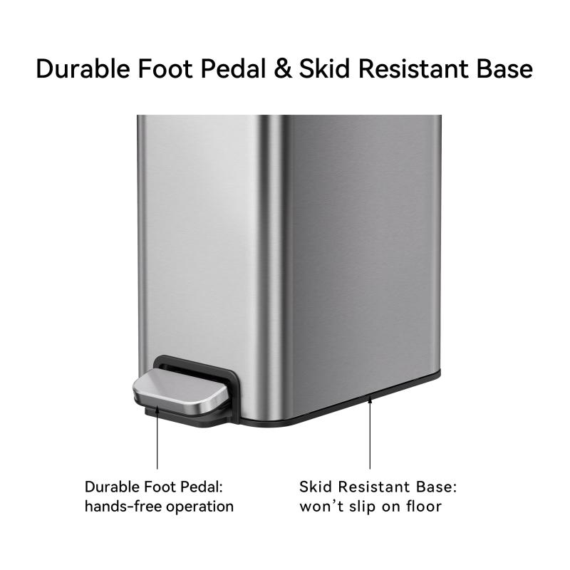 - Durable Foot Pedal Operation: hands-free trash disposal with the sturdy pedal built for years of reliable use