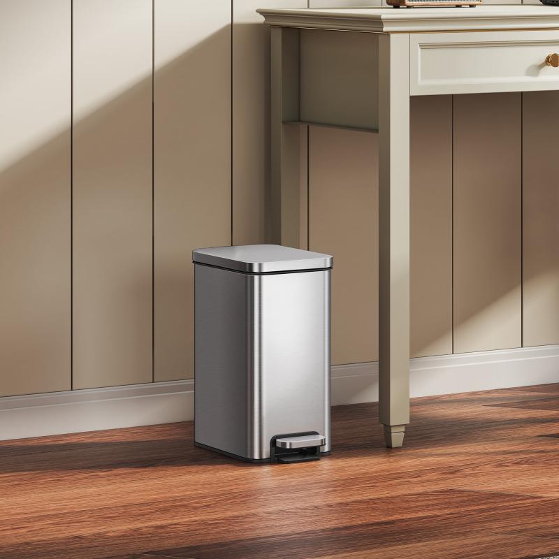 - Slim Vertical Profile: compact 2.6 gallon step trash can fits narrow spaces in bedroom, bathroom, or home office