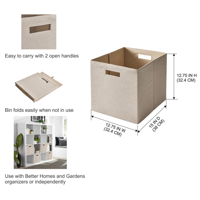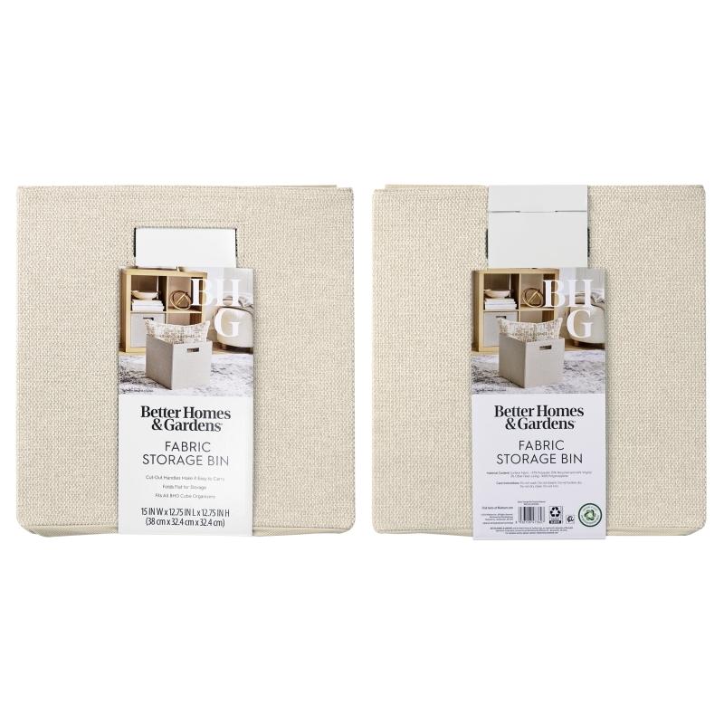 Better Homes & Gardens Collapsible Fabric Cube Storage Bin, Toasted Almond Textured