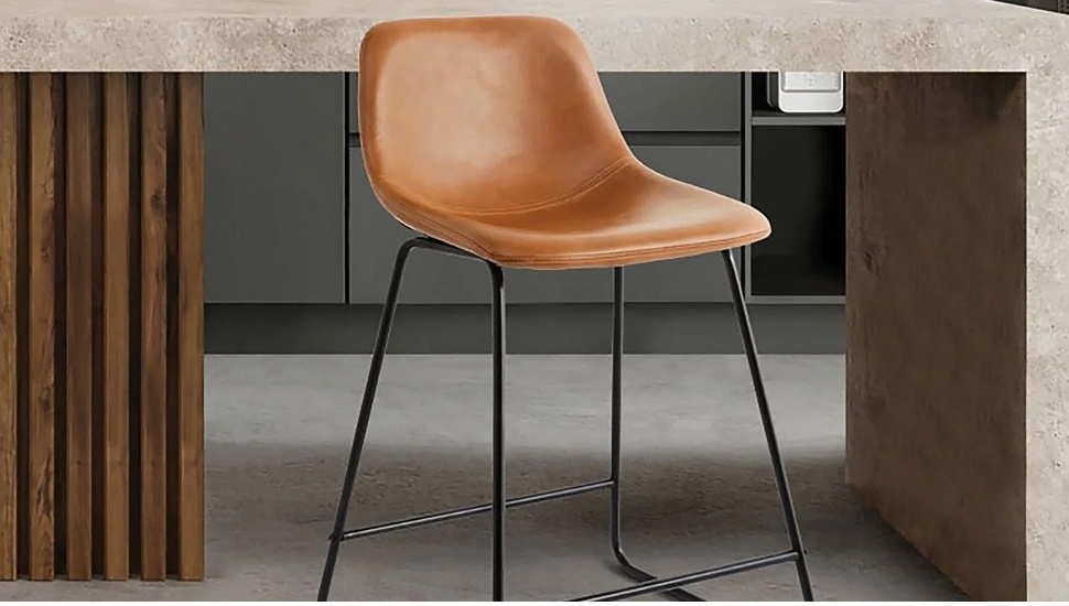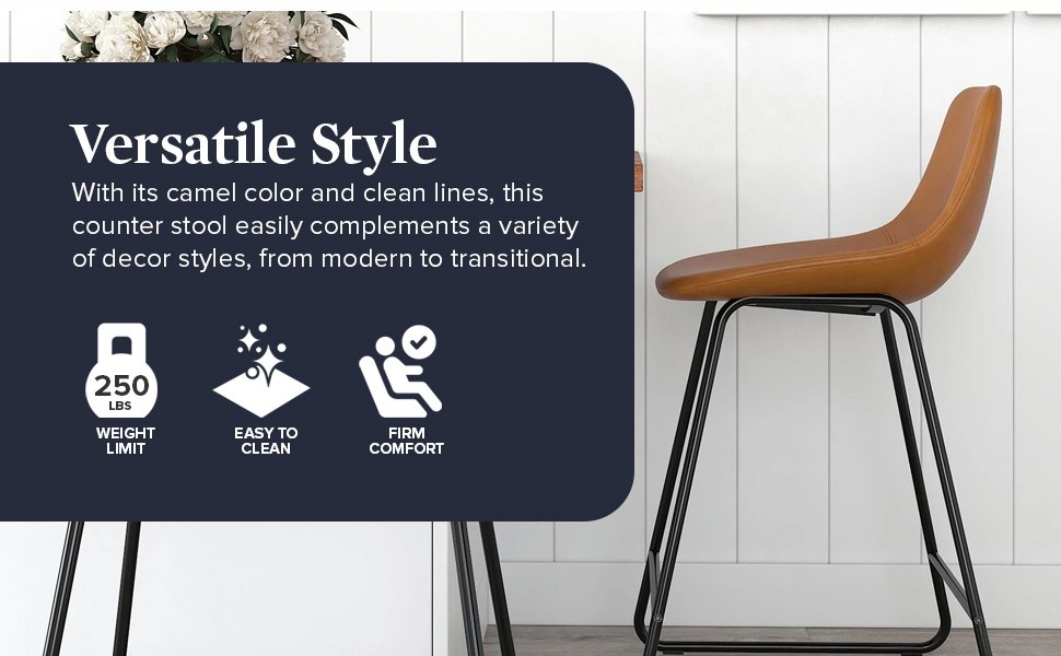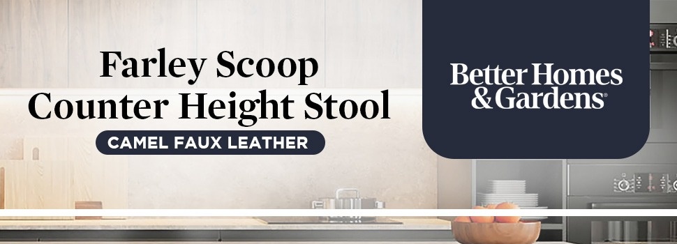 Better Homes & Gardens Farley Scoop Counter Height Stool, Camel Faux Leather