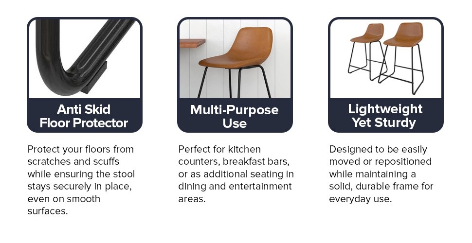 - Your kitchen island looks lonesome – make it the social hub it was meant to be with a modern industrial 24” counter height stool that brings comfort and vast style to your dining and bar spaces for eating, drinking, and engaging with friends.