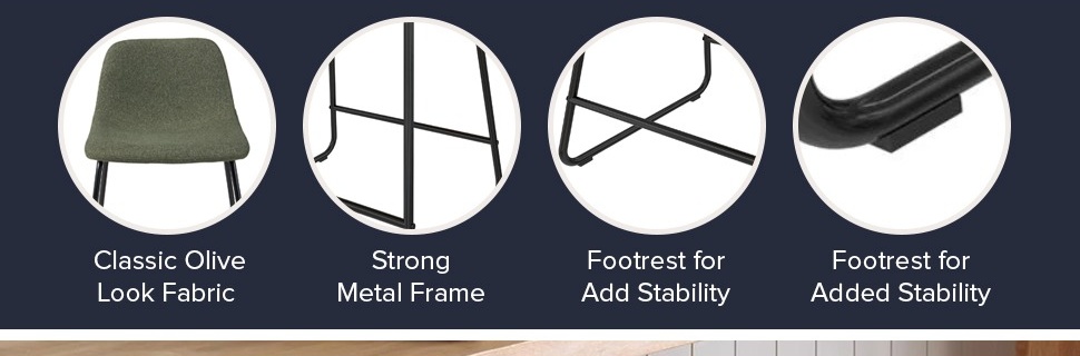 - Materials & Construction: Sturdy wood frame | Charcoal-look fabric upholstery | Steel metal sled-style base