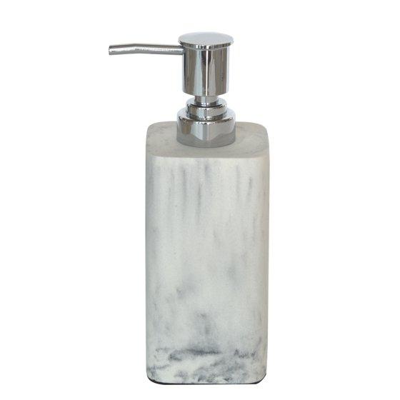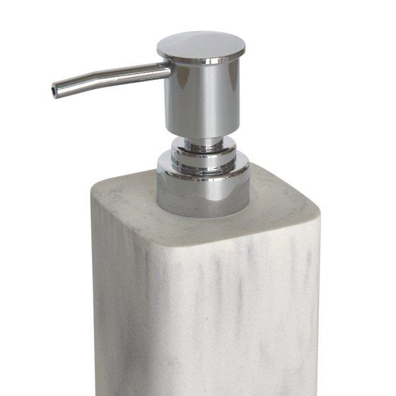 - Resin soap pump in faux marble finish features a clean and stylish design