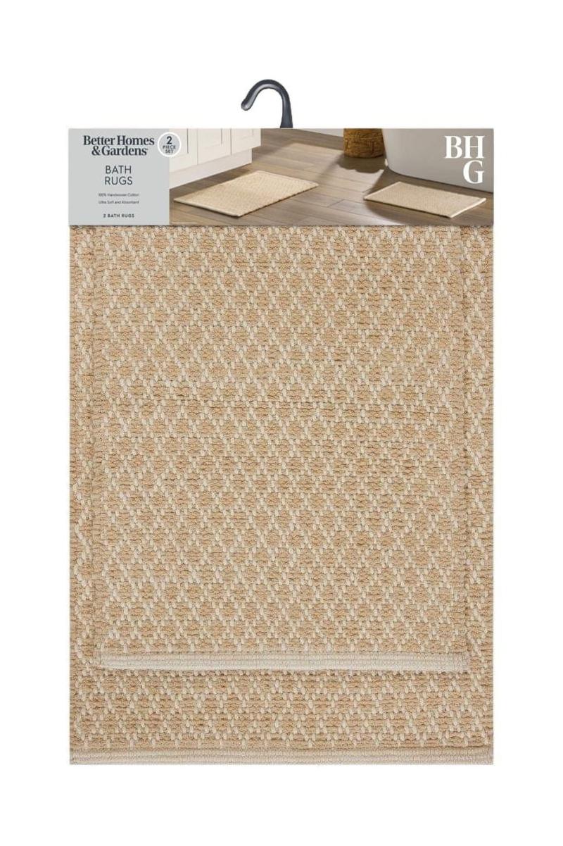 Better Homes & Gardens Cotton Diamond Bath Rug Set, Beige, 2 Piece, 17" x 24" & 20" x 30"