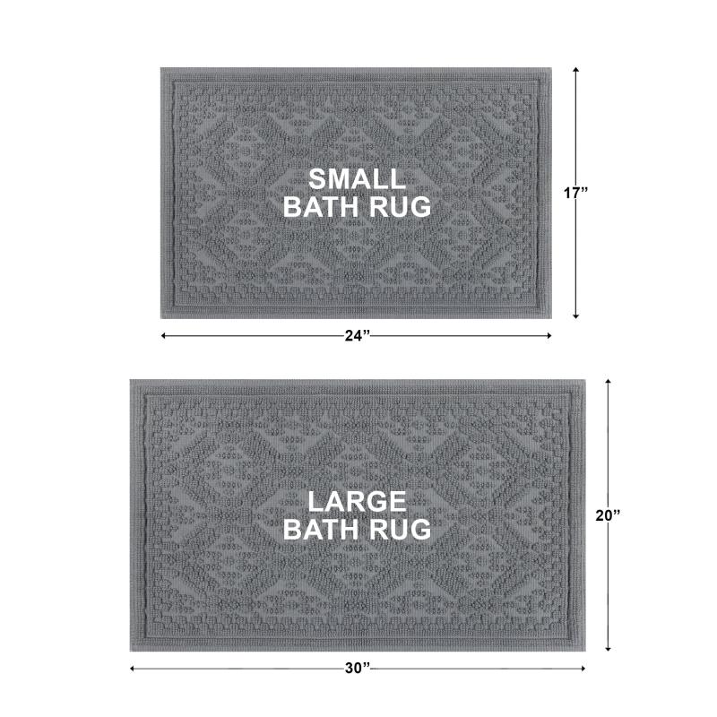 - Set includes two bath rugs: 17" x 24" and 20" x 30"