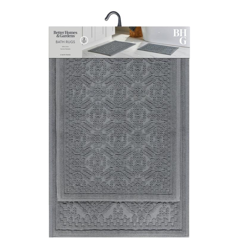 Better Homes & Gardens Kati Lattice Bath Rug Set, Gray Flannel, 2 Piece, 17" x 24" and 20" x 30"