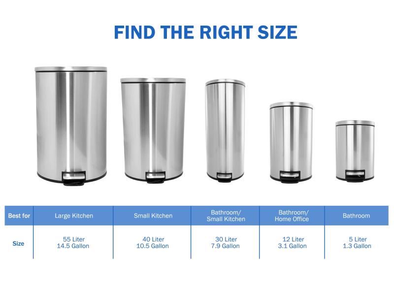 - Modern Oval Design: space-saving durable stainless steel trash can fits in seamlessly in every room, perfect for kitchens, laundry rooms, offices, bathrooms or tight spaces.