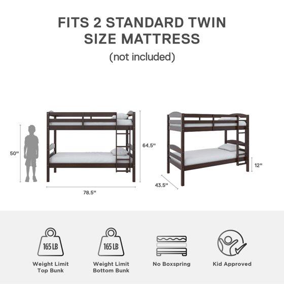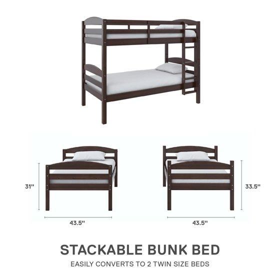 Better Homes & Gardens Leighton Solid Wood Twin-over-Twin Convertible Bunk Bed, Mocha