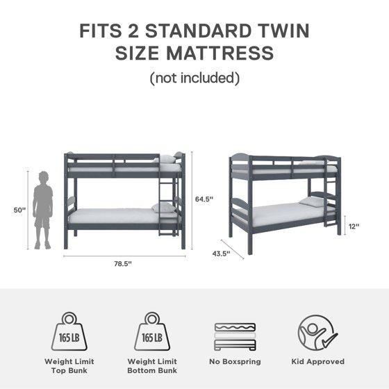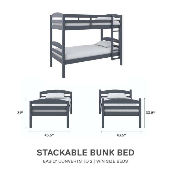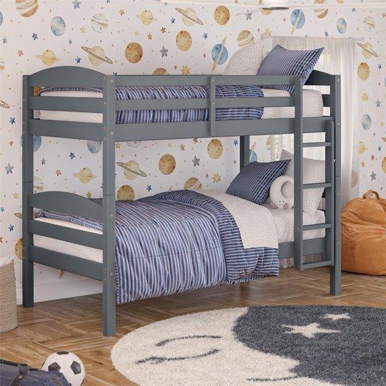 Better Homes & Gardens Leighton Solid Wood Twin-over-Twin Convertible Bunk Bed, Gray