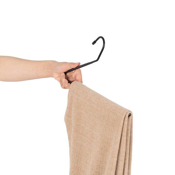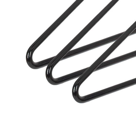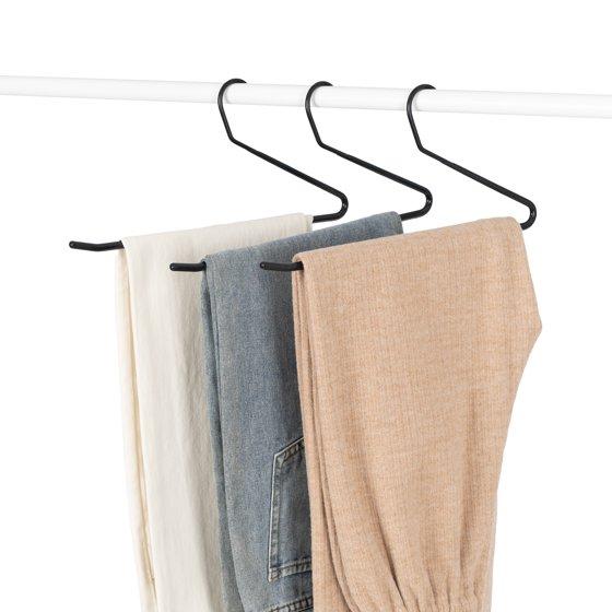The non-slip, grip-styled Better Homes & Gardens Non-Slip Open-Ended Steel Pant adult Clothes Hanger, Black & Chrome, 3 Count, provides a smart, practical storage and organization solution for your closets and wardrobes. These sturdy, z-shaped, open-ended pants hangers are specially designed for easy-access storage and to help keep pants from creasing or wrinkling. They each measure 13.98"W x 0.2"D x 6.6"H. The hangers are durably constructed with steel, and they feature a Non-Slip hanging bar to prevent sharp edges and to protect delicate clothing materials. The simple, slim design of the Better Homes & Gardens Non-Slip Open-Ended Steel Pant Clothes Hanger, 3 Count, complements most closets and maximizes storage space to help you organize all your pants stylishly and securely.