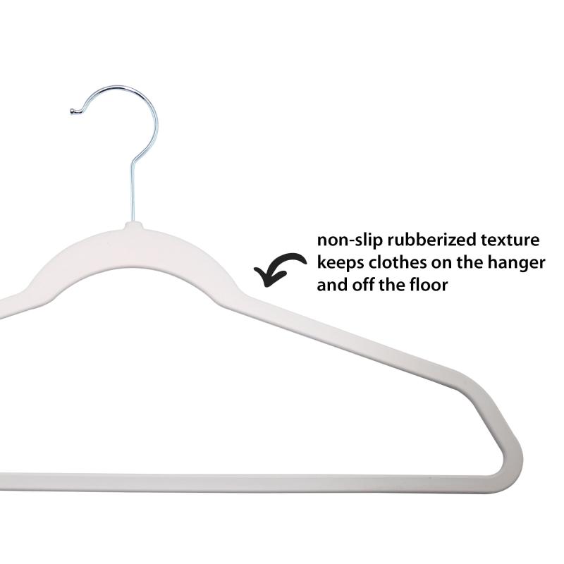 - Nonslip, rubberized surface for keeping clothing on the hanger and off the floor