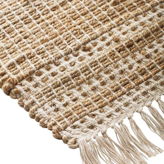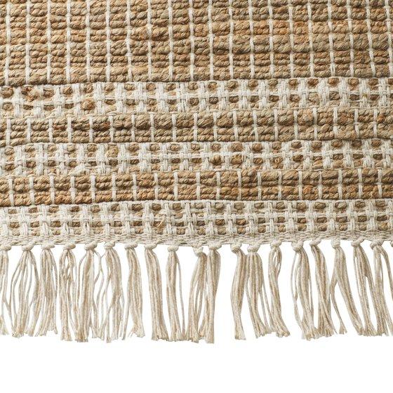 - Rectangular jute indoor rug with tassel fringe
