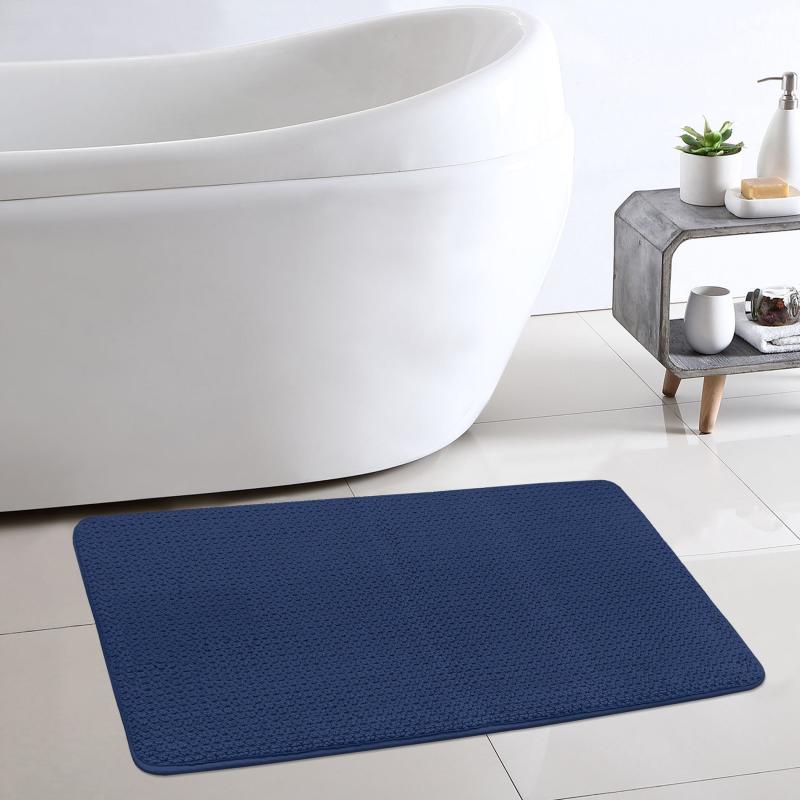 Better Homes & Gardens Signature Soft Cotton Memory Foam Bath Rug, Blue Admiral, 20" x 34"