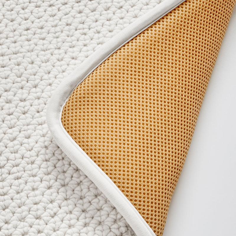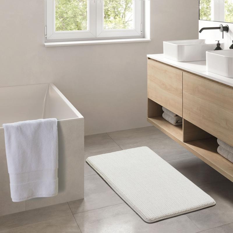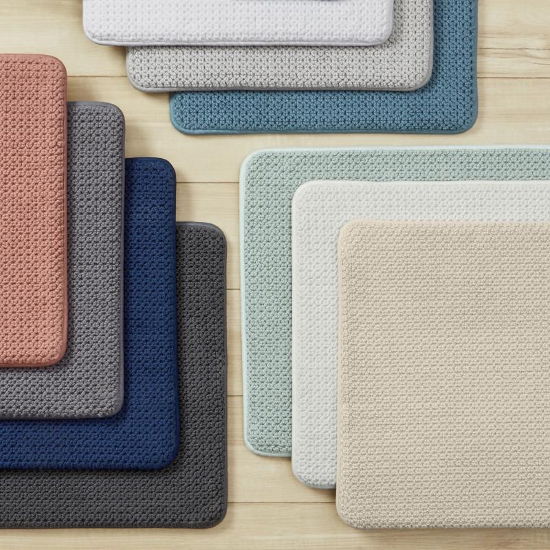 Introducing the Better Homes & Gardens Signature Soft Textured Cotton Memory Foam Bath Rug, exclusively available at Walmart. This luxurious bath rug, measuring 20" x 34", is designed to elevate your bathroom decor and provide ultimate comfort underfoot. Crafted from 100% cotton with a woven construction with memory foam, choose from a stunning array of colors to match your bathroom's aesthetic. Maintaining this bath rug is a breeze - simply machine wash it separately using a gentle cycle and mild detergent. Avoid bleach, tumble dry on low heat, and trim any long yarn ends with scissors to keep it looking pristine. For added safety and stability, we recommend using an anti-skid rug pad underneath.