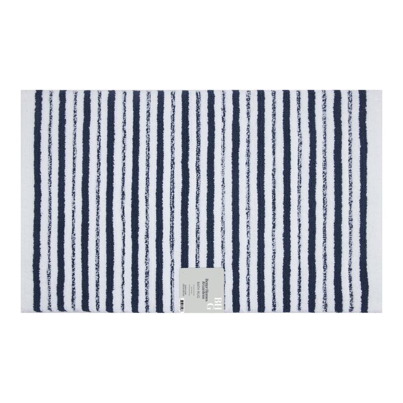 Better Homes & Gardens Signature Soft Tufted Stripe Bath Rug, Blue Admiral & White, 20" x 34"