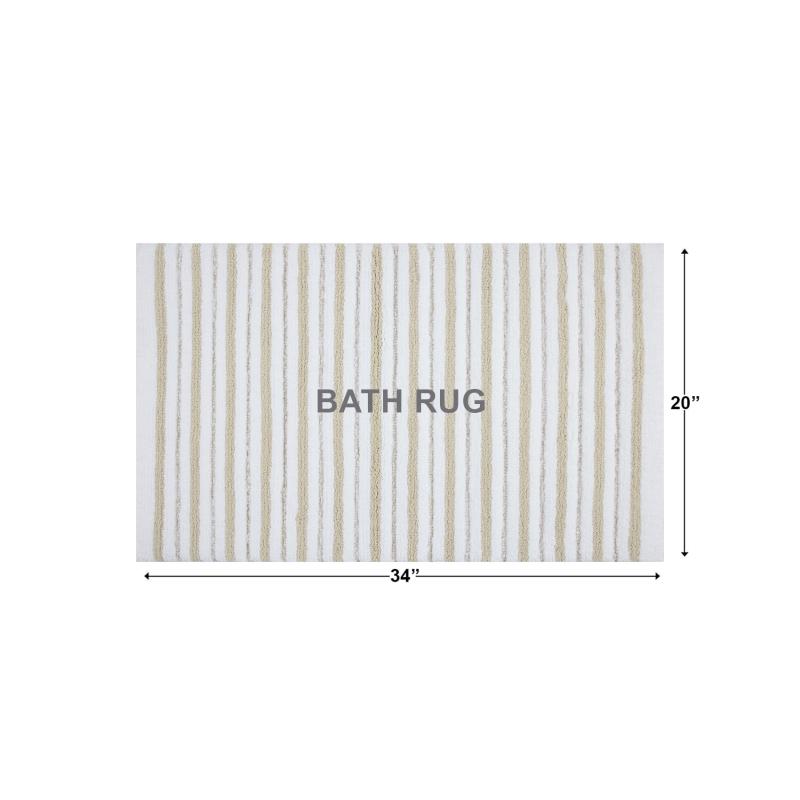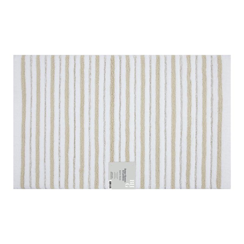 Better Homes & Gardens Signature Soft Tufted Stripe Bath Rug, Almond Biscuit & White, 20" x 34"