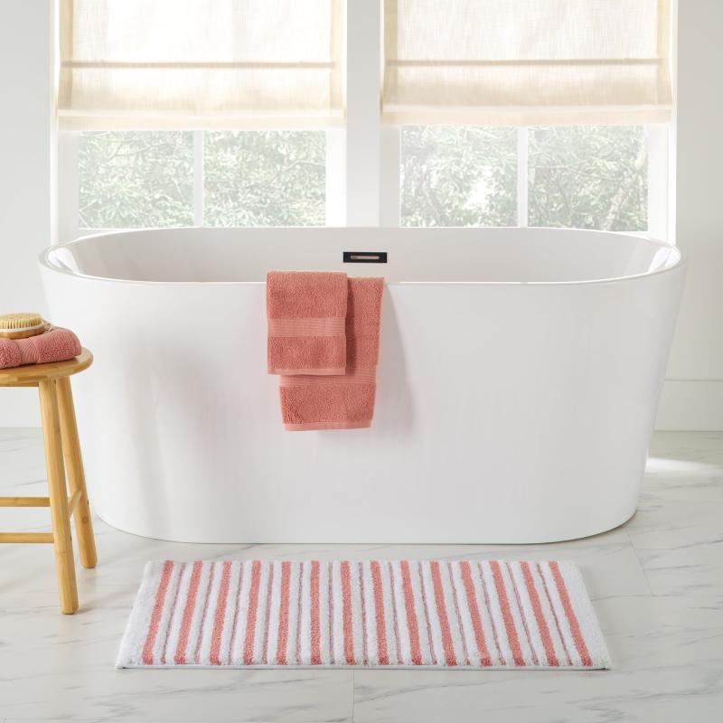 Better Homes & Gardens Signature Soft Tufted Stripe Bath Rug, Old Rose & White, 20" x 34"