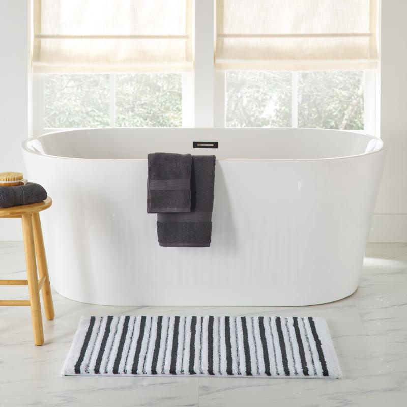 Add a touch of luxury to your bathroom with the Better Homes & Gardens 20" x 34" Signature Soft Tufted Stripe Bath Rug. This tufted bath rug is made from 100% polyester, offering both comfort and durability. Featuring a stylish stripe pattern, it complements a variety of bathroom décors and comes in multiple color options to suit your personal style. The latex backing ensures a non-slip surface for added safety, and the rug is machine washable, making it easy to clean and maintain. Perfect for everyday use while adding a plush, cozy feel underfoot.