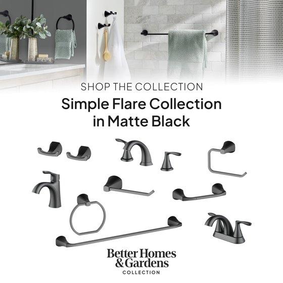 Better Homes & Gardens Simple Flare Style Wall Mount Toilet Paper Holder Matte Black Finish