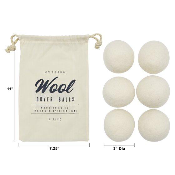Better Homes & Gardens Wool Dryer Balls, Natural, High-Quality New Zealand Wool, 6‑Count