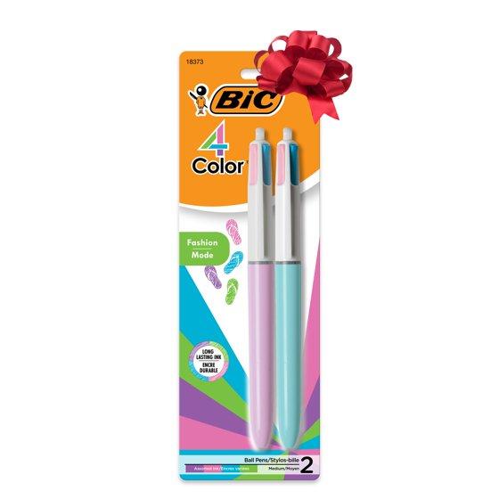 - WHAT'S INCLUDED: Pack of 2 BIC 4-Color Fashion Ballpoint Colored Pens