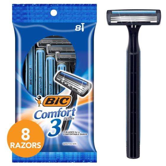 - BIC Comfort 3 Disposable Men's Razor, 3 Blade Razor for a Comfortable Shave, 8-Count