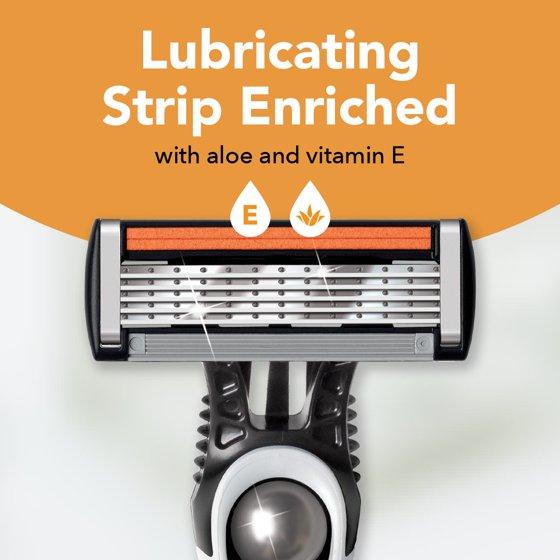- SMOOTH SHAVE: Lubricating strip enriched with aloe and vitamin E for enhanced glide