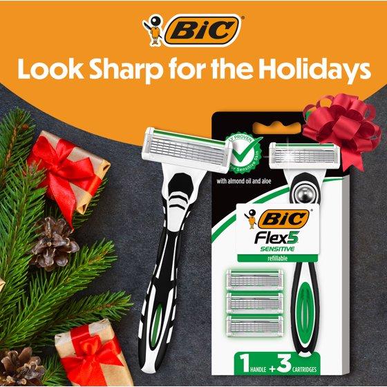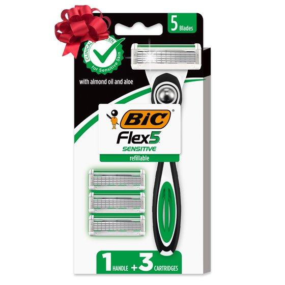 BIC Flex 5 Sensitive Men's 5-Blade Refillable Manual Razors with 1 Handle and 3 Cartridges