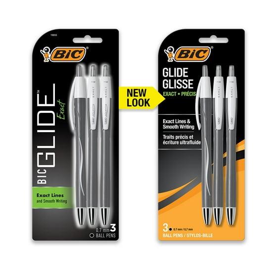 BIC Glide Exact Retractable Ballpoint Pens, Fine Point, 0.7 mm, Black Ink, 3 Count