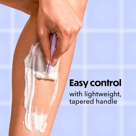 BIC Silky Touch Women's Razors are here to make your shaving routine a breeze. These women's razors come in an 18-pack with four delightful pastel colors: purple, blue, green, and pink. With two blades, these disposable razors provide a smooth and comfortable shave, even in hard-to-reach areas, thanks to their slim head and long, tapered handle. They come with a convenient snap-on cover, making them perfect for your on-the-go lifestyle. This pack of BIC Silky Touch Disposable Razors gives you up to 54 shaves¹, making them a cost-effective choice for your shaving needs. So, this summer, trust BIC Silky Touch Women's Razors for a smooth and easy shave. ¹up to 3 shaves per razor.