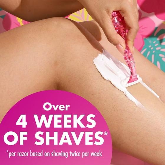 BIC Soleil 3 Simply Women's Disposable Razors offer a simply smooth shave with their triple-blade design. These razors are crafted with a comfortable handle that ensures added control, making shaving an easy and pleasant experience. The soothing moisture strip is enriched with Vitamin E for a silky smooth glide. Designed to provide a silky smooth shave with ease. The lightweight design makes these razors perfect for travel, fitting easily into any gym or travel bag. The colorful, translucent handles add a touch of fun to your daily routine. Enjoy the simplicity and effectiveness of BIC Soleil 3 Simply Razors for a smooth, effortless shave every time.