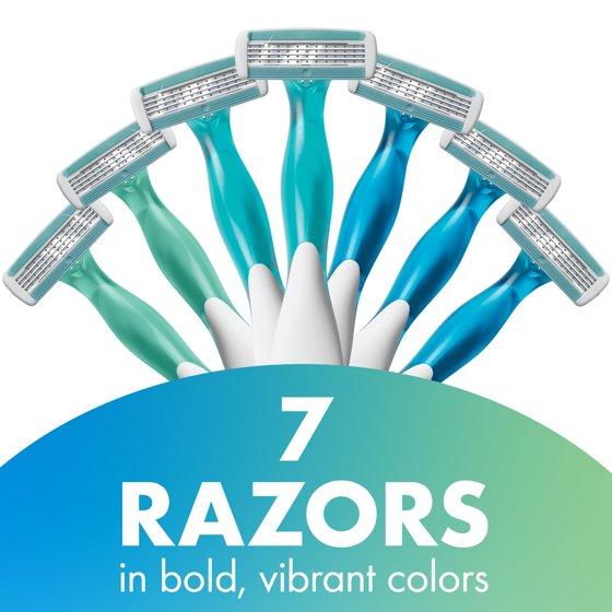 - WHAT'S INCLUDED: One 7-count pack of BIC Soleil Comfort Disposable Razors for Women with pretty blue and green handles